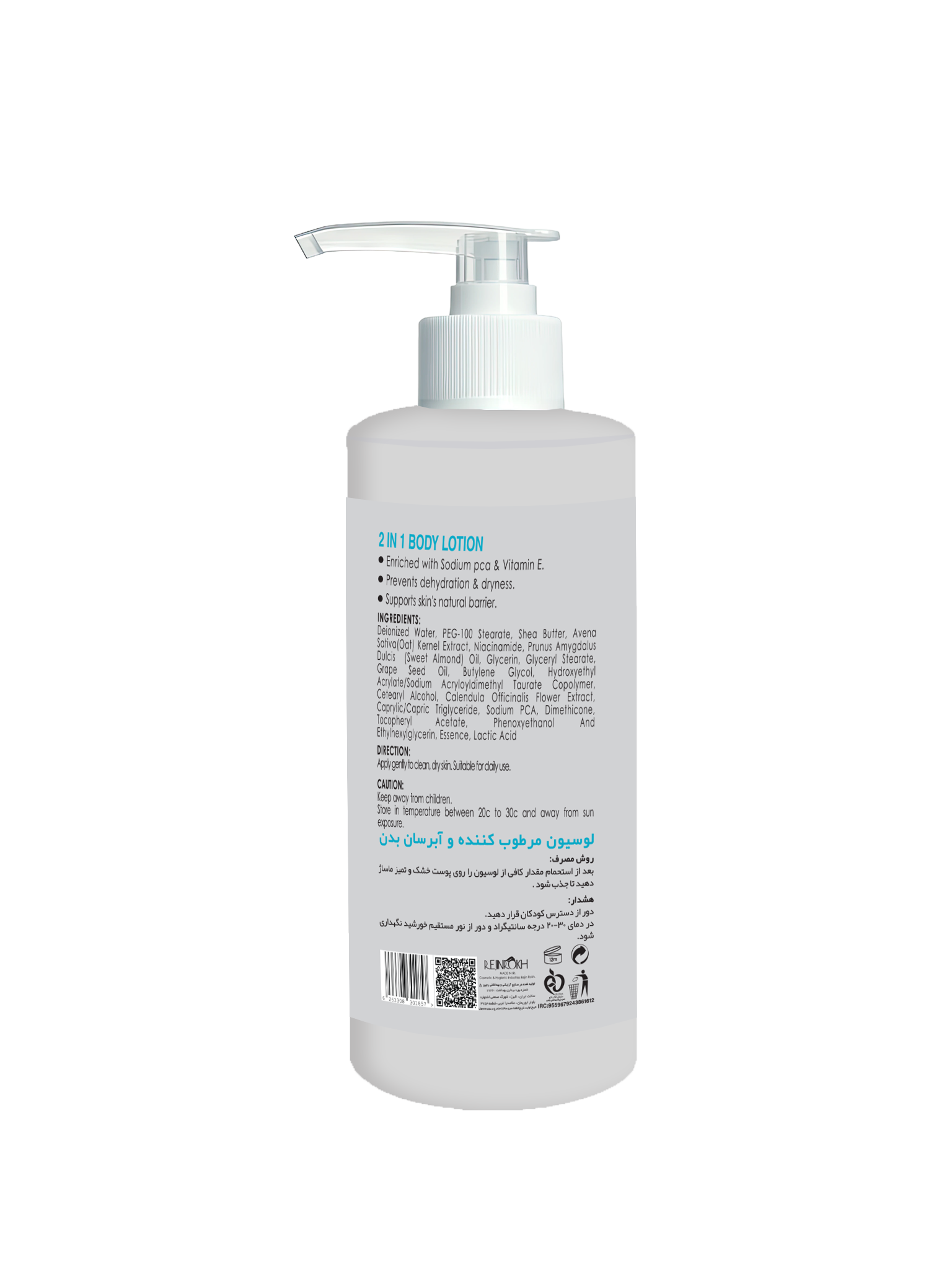 مواد موثر: شى باتر، عصاره آلوئه ورا، عصاره جو دوسر و روغن هسته انگور